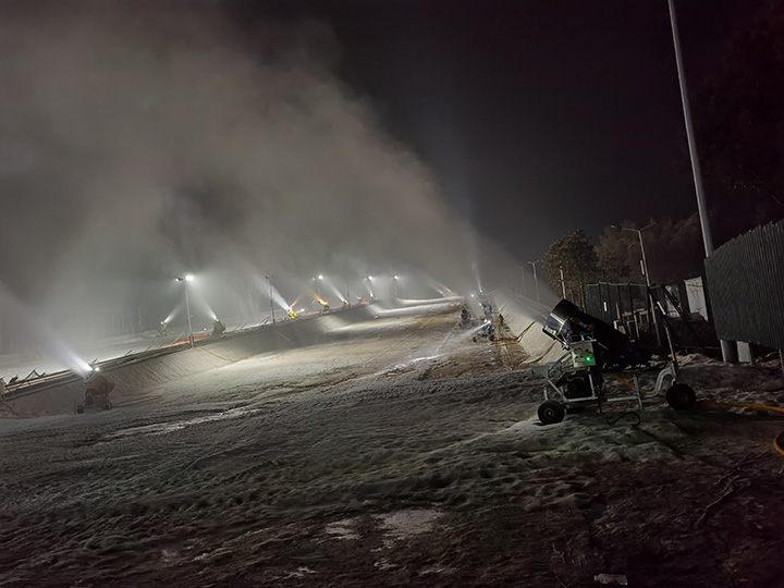 公司成立多年來,擁有自己固定生產人員和專業團隊。本公司生產的造雪機按規格分類有大型、中型、小型、微型四個品種;按使用環境分類有不帶高壓水泵和自帶高壓水泵兩大類;按走行方式分類有拖拉式走行和自主走行兩類。
